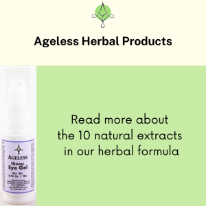 Our Ageless Herbal Eye Gel removes dark rings, bags under the eyes and puffy eyes. It contains butcher’s broom, centella, camomile, cornflower, green tea, horsetail, ivy, lady’s mantle, extract of germinated wheat, as well as rosehip to keep your eye area looking young and smooth.