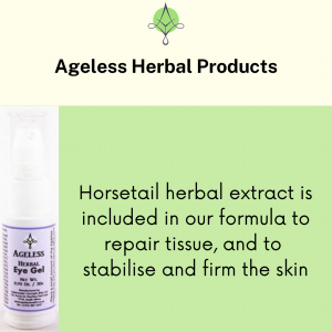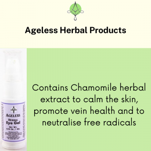 Our Ageless Herbal Eye Gel removes dark rings, bags under the eyes and puffy eyes. It contains butcher’s broom, centella, camomile, cornflower, green tea, horsetail, ivy, lady’s mantle, extract of germinated wheat, as well as rosehip to keep your eye area looking young and smooth.
